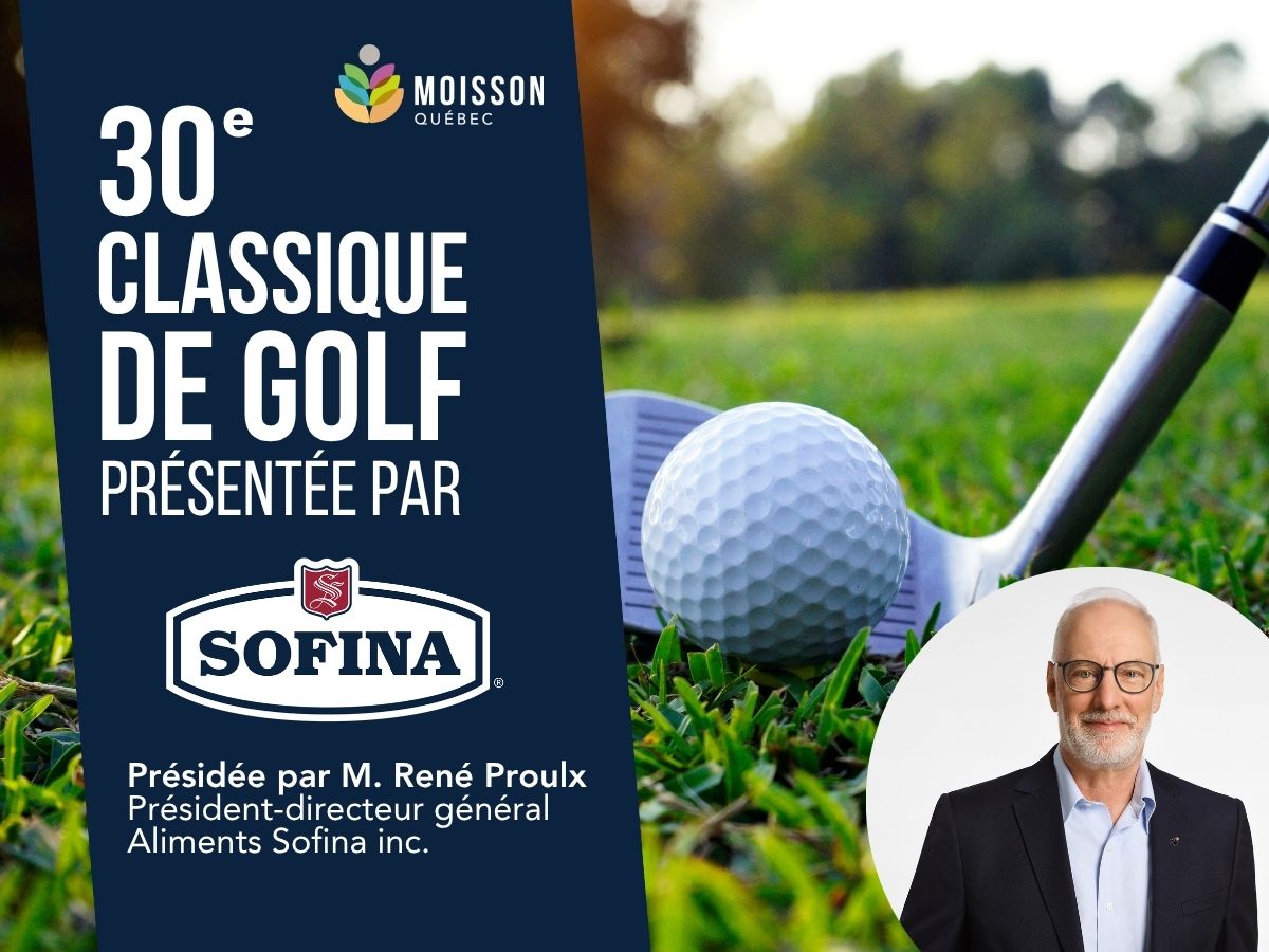 Moisson Québec vous invite à la 30e Classique de golf, présentée par Aliments Sofina inc., sous la présidence d’honneur de monsieur René Proulx, président-directeur général d’Aliments Sofina inc., qui aura lieu le lundi 31 août 2026 au Club de golf Royal Québec.